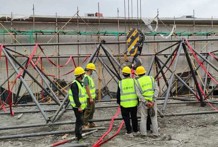 5、華亭煤礦網(wǎng)架工程網(wǎng)架安裝前應(yīng)熟悉圖紙,了解施工工藝,弄清節(jié)點構(gòu)造,掌握節(jié)點構(gòu)造,掌握施工方法,注意安裝順序。