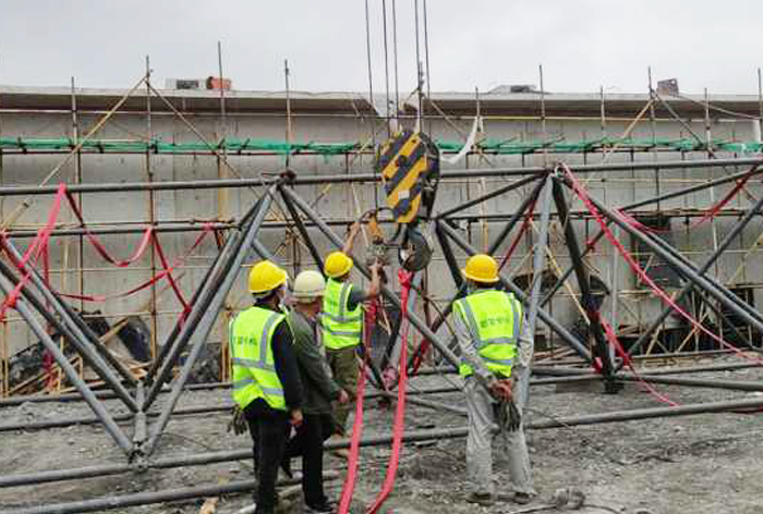 4、華亭煤礦網(wǎng)架工程在開工時要保證水、電、道路的三通,應(yīng)確保構(gòu)件運輸?shù)轿坏牡缆窌惩ā?/span>